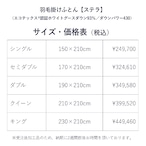 エコテックス®羽毛掛ふとん【ステラ】S/SD/D/Q/K エコテックス®認証ホワイトグースダウン93% DP430−立体キルト(移動防止)80サテン