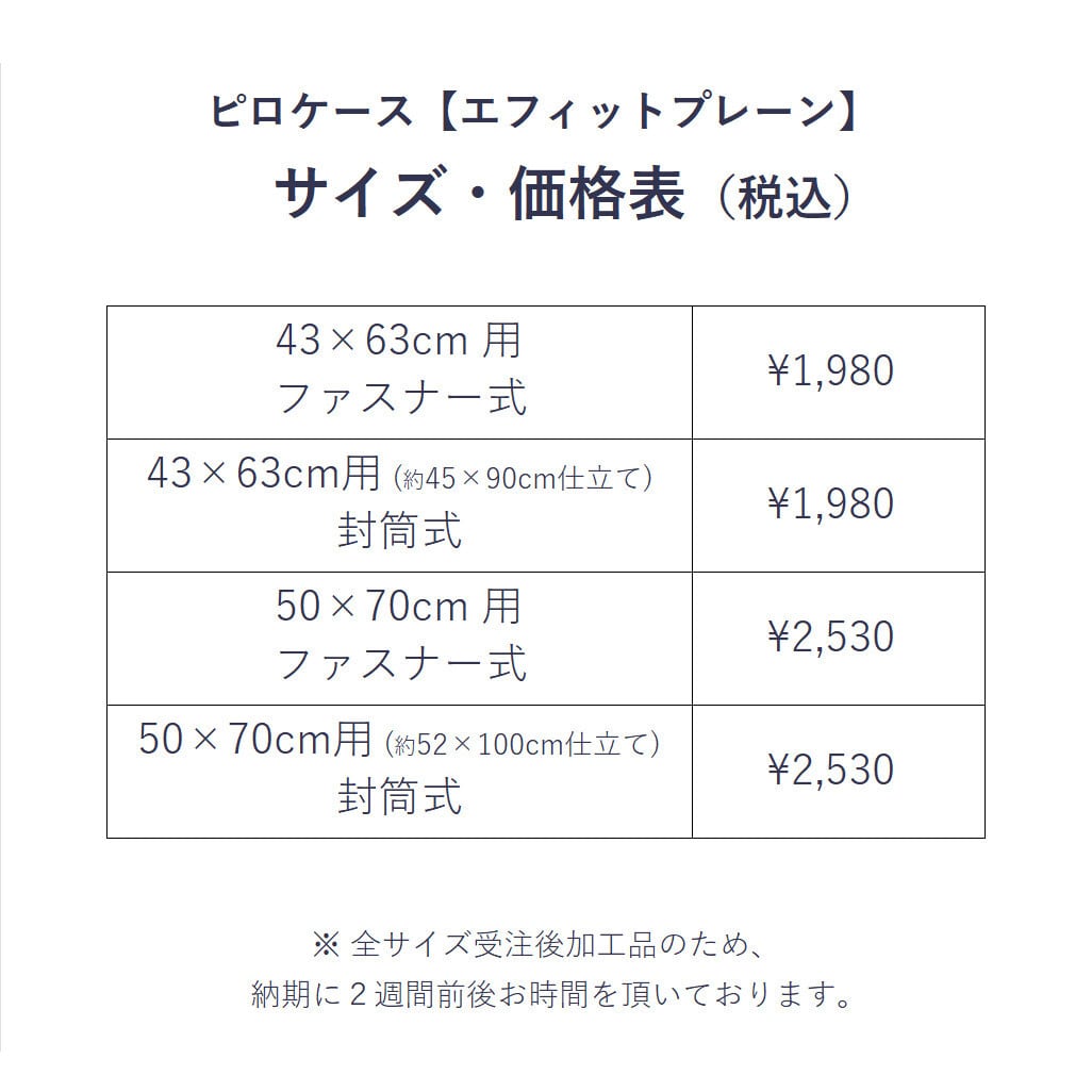 ピロケース (枕カバー)【エフィットプレーン】43×63cm 用 / 50×70cm 用